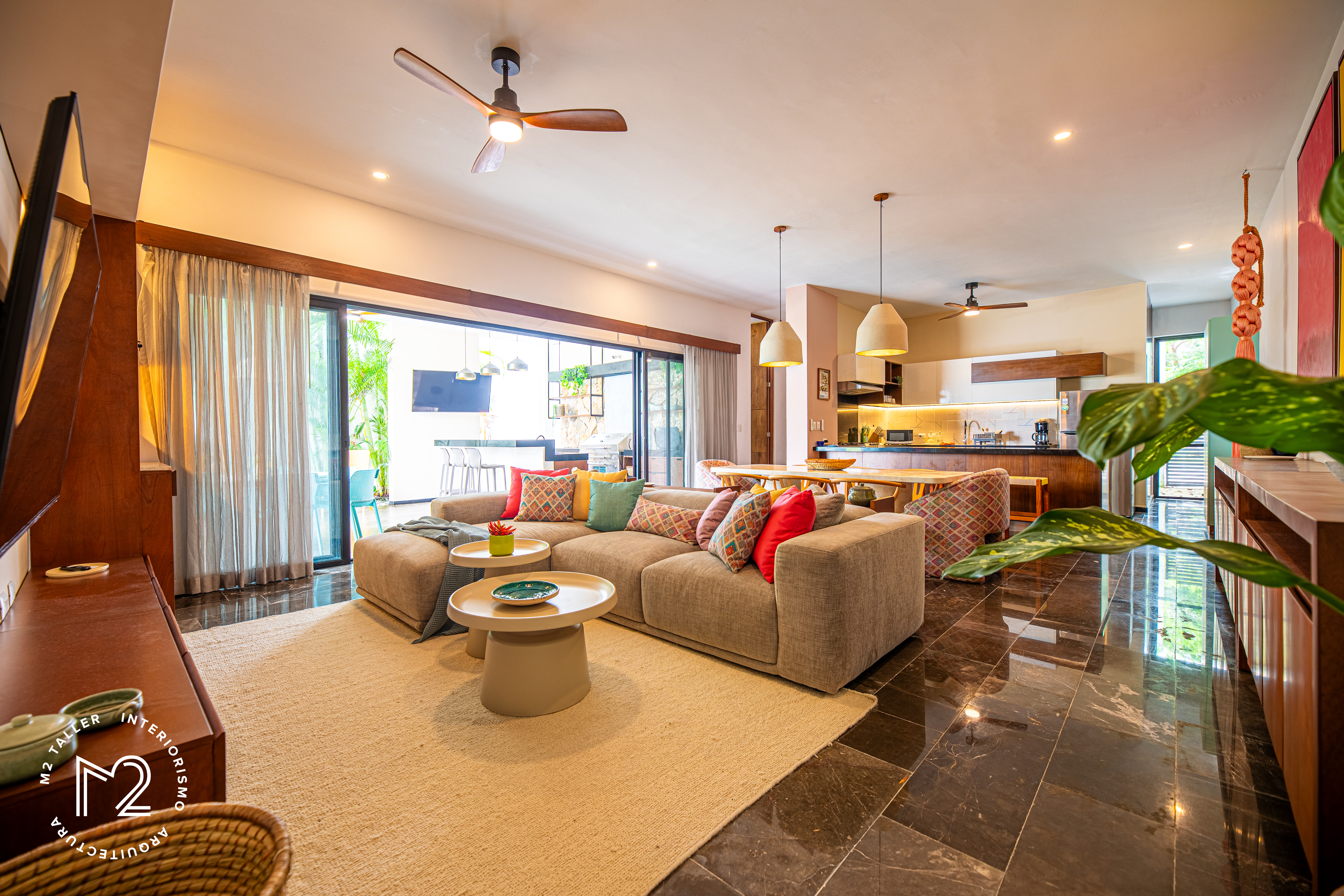Cada rincón fue diseñado para disfrutarse: desde la cocina que invita a quedarse hasta la terraza que se abre al verde tropical. Una casa que respira calma, calidez y carácter mexicano contemporáneo.